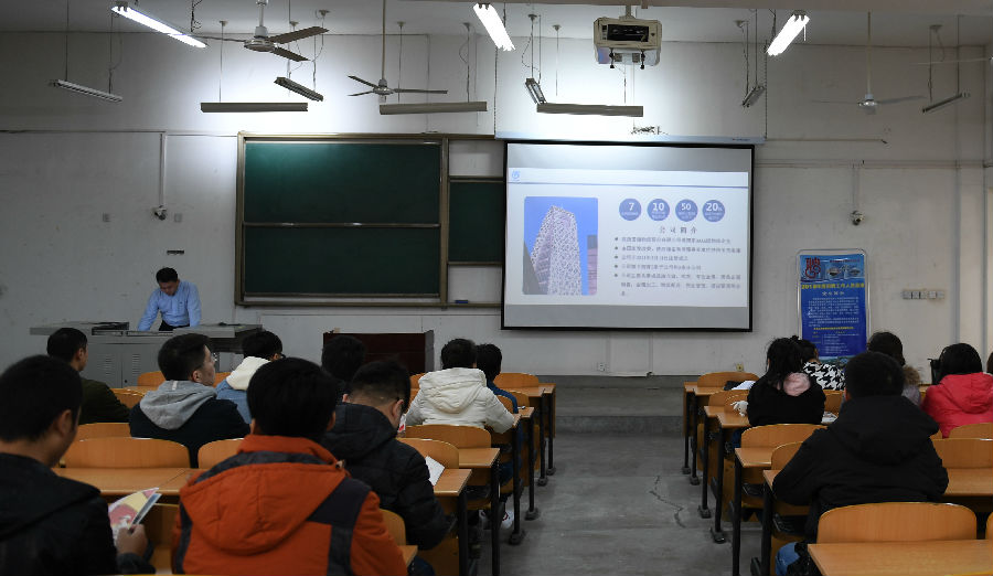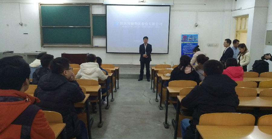 12月12日下午14:00,陕西国储物流股份有限公司在鄠邑校区B112教室进行招聘宣讲,该公司人事部总监张鹏、企业规划部部长于江负责宣讲,1024社区 党委副书记张建高、2014级辅导员刘晓阳及20余名2018届毕业生参加了宣讲会。