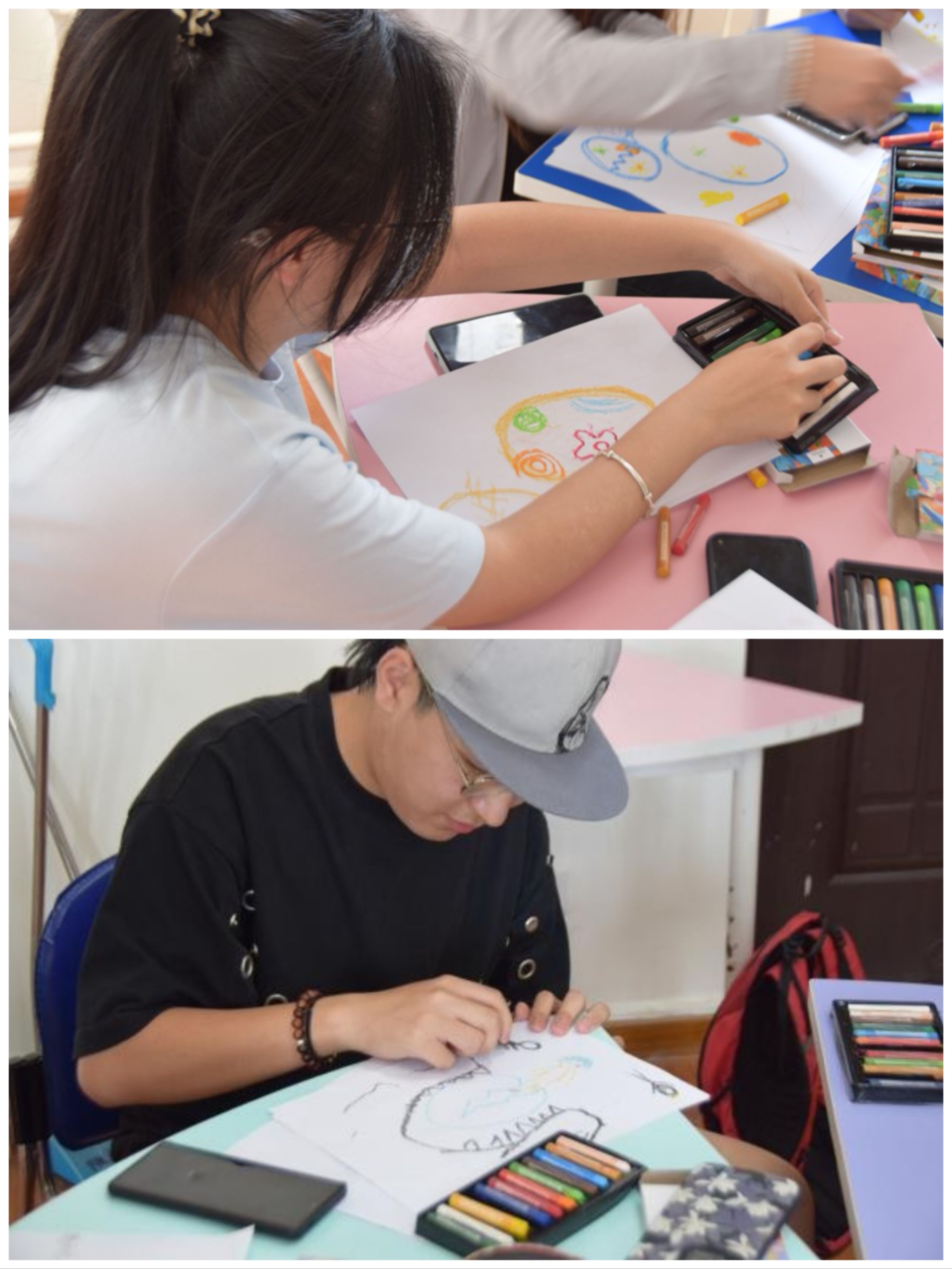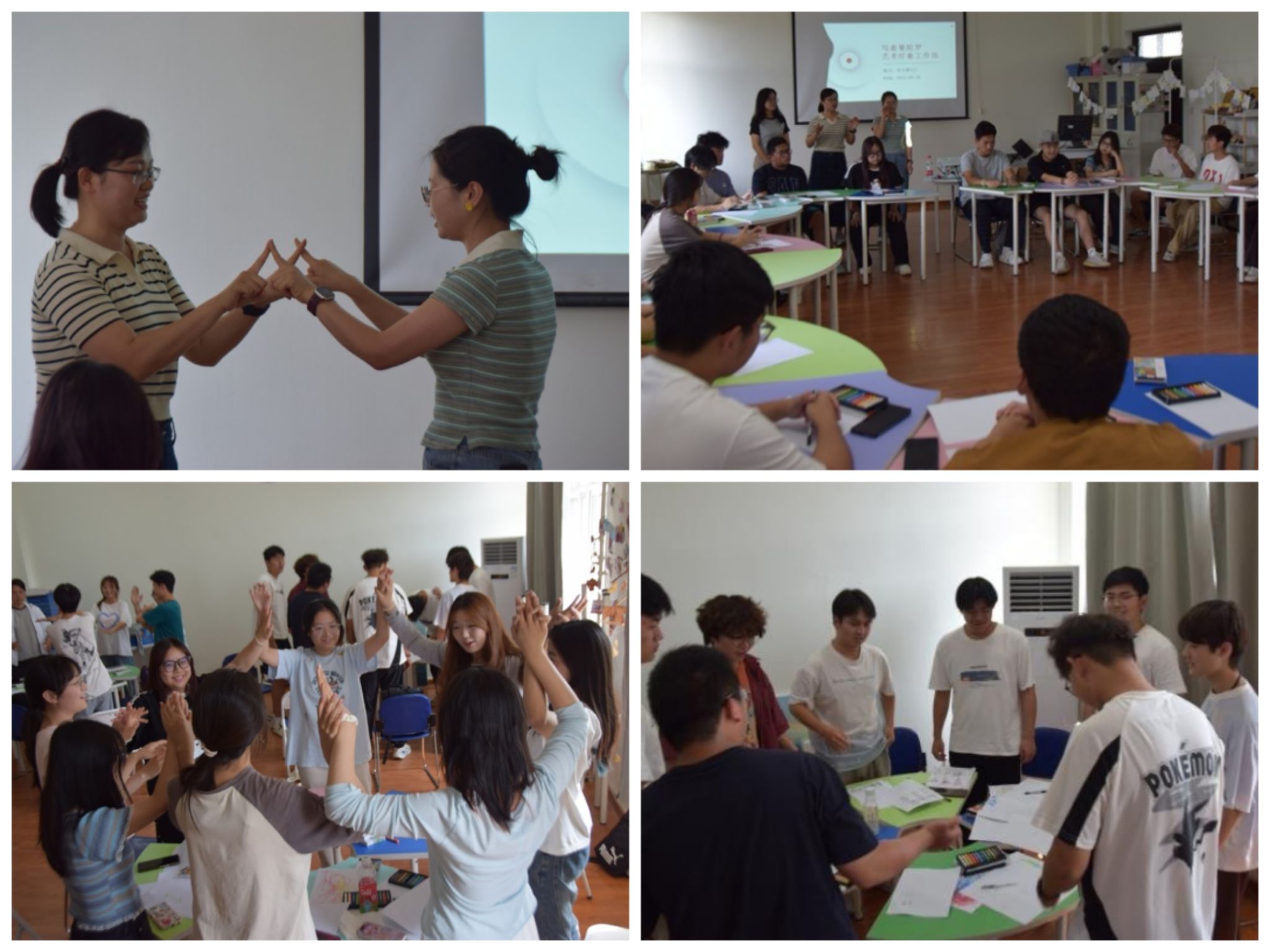 写意曼陀罗艺术疗愈工作坊区别于传统心理辅导形式,旨在通过绘画、色彩、故事叙述与团体互动,为学生提供了一个安全表达、深度探索内心世界的创新平台。本次活动分为切土豆”“名之舞”“心灵之树”“颜色地图”“自我探索”“自画像等环节,通过主持人专业的引导,逐步完成认识自我、认识他人、相互协作和情感联结的目标。