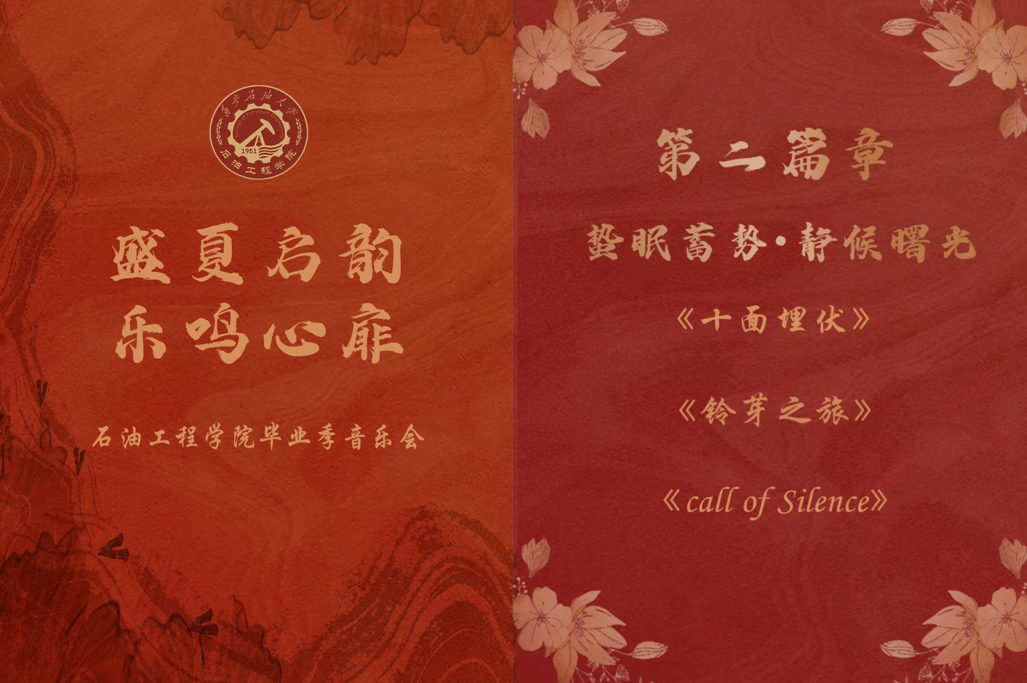 为深入贯彻落实学校第三次党代会精神,积极响应“一流西石大、文化西石大、幸福西石大”建设,传承和弘扬石油精神、铁人精神、春雨精神,66日晚,1024社区 “盛夏启韵,乐鸣心扉”毕业季音乐会在鄠邑校区图书馆弘石报告厅深情上演。音乐会以校史脉络为叙事主线,通过四个篇章的音乐演绎,串联起学校74年发展历程中的重要节点,为师生呈现了一场兼具历史厚重感与青春感染力的视听盛宴,学院师生及兄弟院系嘉宾400余人共同观看了此次演出。