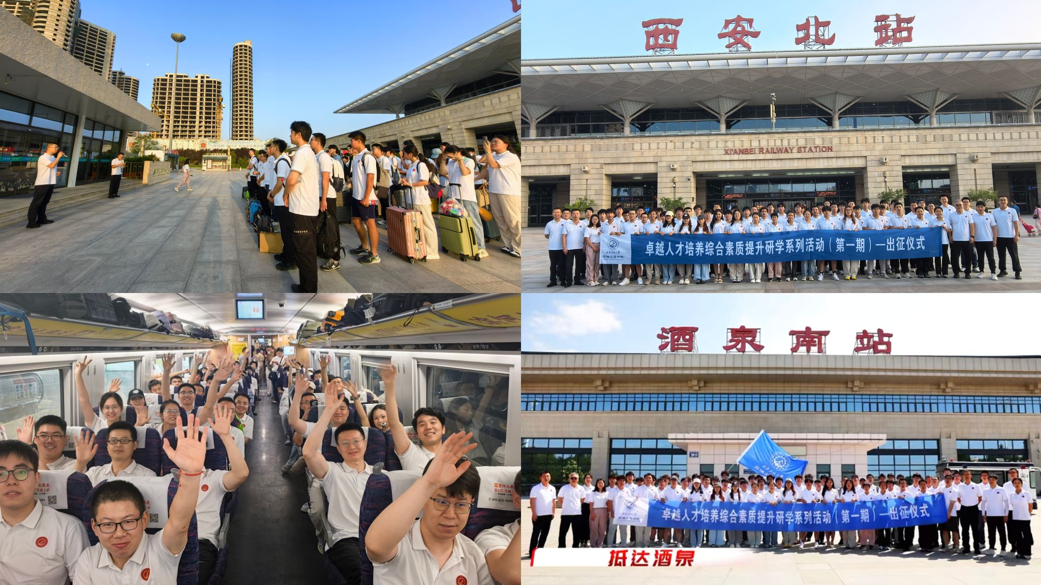 7月14日清晨,研学团在西安北站集结,王琛主持了出征仪式,详细介绍了此次研学实践活动的目的及意义,艾二鑫强调了研学活动的安全注意事项。随后,研学团精神饱满地踏上征程,满怀期待地前往玉门油田,开启为期五天的研学之旅。