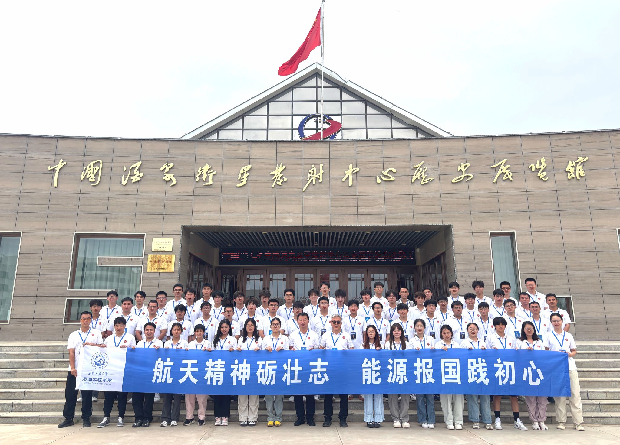 7月17日,研学团参观了酒泉卫星发射中心展览馆和东方红卫星发射基地。在展览馆,通过珍贵实物和历史照片,系统了解了中国航天从“东方红一号”到现代载人航天的壮阔历程,深刻体会“自力更生、艰苦奋斗”的两弹一星精神。随后,研学团前往东风革命烈士陵园,缅怀革命先辈,向已故老一辈航天人敬献鲜花。在载人航天卫星发射场区,研学团近距离仰望巍峨发射塔架,切身感受“特别能吃苦、特别能战斗、特别能攻关、特别能奉献”的载人航天精神如何转化为现实力量,进一步坚定了学生们为祖国能源事业奋斗的信念和决心。