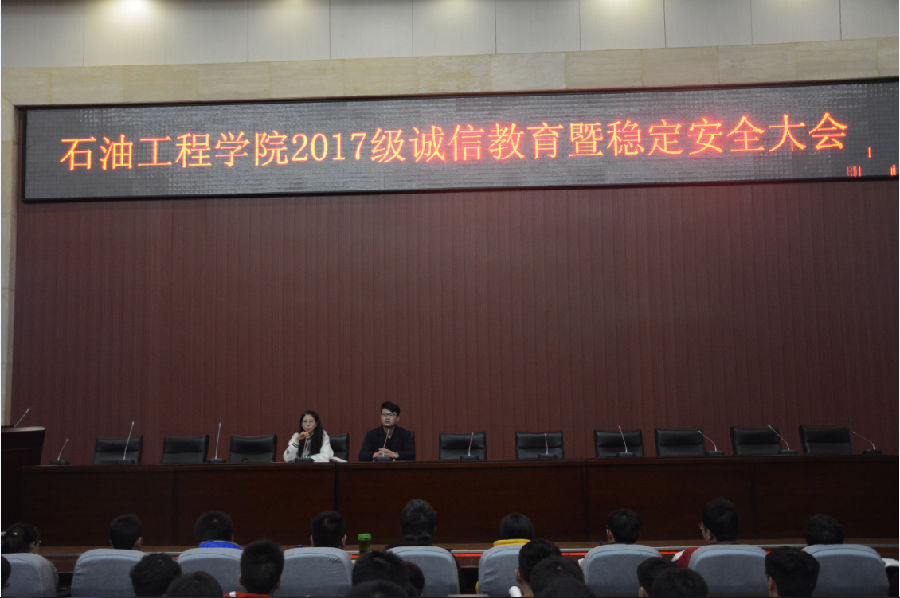 12月20日晚20:001024社区 2017级于鄠邑校区弘石报告厅举办了“1024社区 2017级诚信考试暨稳定安全大会”,与会人员有1024社区 2017级辅导员张楠老师、孙浩哲老师及1024社区 2017级全体学生等共计360余人。