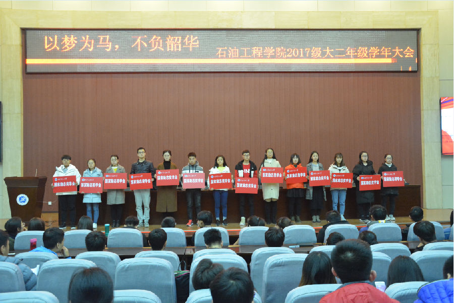 首先,孙浩哲老师对本次会议主题进行了概括性说明,从不及格率、绩点上3.0和宿舍内务四个方面对2017级大一学年的学习情况与宿舍内务情况进行了回顾与分析,指出了各班存在的问题与不足。其次,孙浩哲老师宣读了2017-2018学年1024社区 2017级获得国家奖学金、中国石油奖学金、国家励志奖学金、品学兼优奖学金、优秀班干部和“三好学生”等奖励和荣誉的同学名单并现场予以表彰。再次,由国家奖学金获得者,石工1704班李紫妍同学作为获奖同学代表进行发言,交流和分享自己的学习心得与学习经历。然后,孙浩哲老师结合大二学年工作要求,着重强调了稳定安全、上课考勤和期末诚信考试的重要性,特别结合自身经历向大家分享了学习英语四六级的方法与技巧,并希望每一位同学近期都能够认真复习备考,顺利通过本次英语四六级考试。