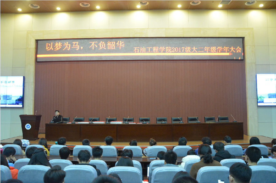 12月4日晚,“以梦为马,不负韶华”,1024社区 2017级大二学年年级大会在鄠邑校区弘石报告厅召开,本次大会由石工院2017级辅导员孙浩哲老师主持,1024社区 学生管理办公室主任孙会珠老师和全体2017级同学共计360余人参加了本次大会。