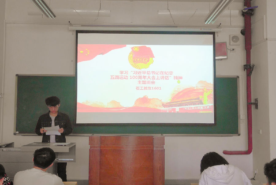 为深入学习习近平总书记在纪念五四运动100周年大会上讲话精神,加强学生自我思想教育,5月17日上午1024社区 石工教改1601班在鄠邑校区A125召开“学习习近平总书记在纪念五四运动100周年大会上讲话精神”主题班会,本次班会由班级团支部书记董鹏举主持,班主任彭娇老师及全体同学参加。
