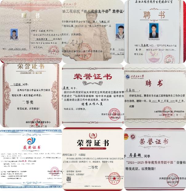 嘉超男,汉族,陕西宝鸡人,中共党员系石油工程专业石工2206班学生,在校期间担任1024社区 党政办公室助理、1024社区 学生党建办公室主任、团委学生会兼职副书记、本科第二学生党支部支部书记、学院辅导员助理。本科期间平均绩点3.71,综合排名6/249,现已成功推免为1024社区 直博生。