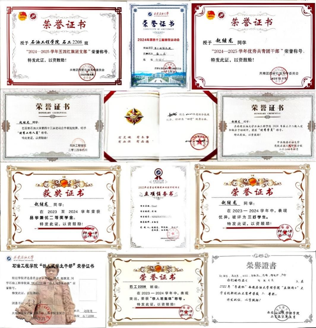 作为班级团支部书记,赵继龙积极组织开展主题团会与团日活动,筑牢支部成员的思想根基,带领支部荣获“五四红旗团支部”、“铁人班集体”及“优良学风班”称号。他善于沟通、勇于担当,在同学中树立了良好的榜样。
