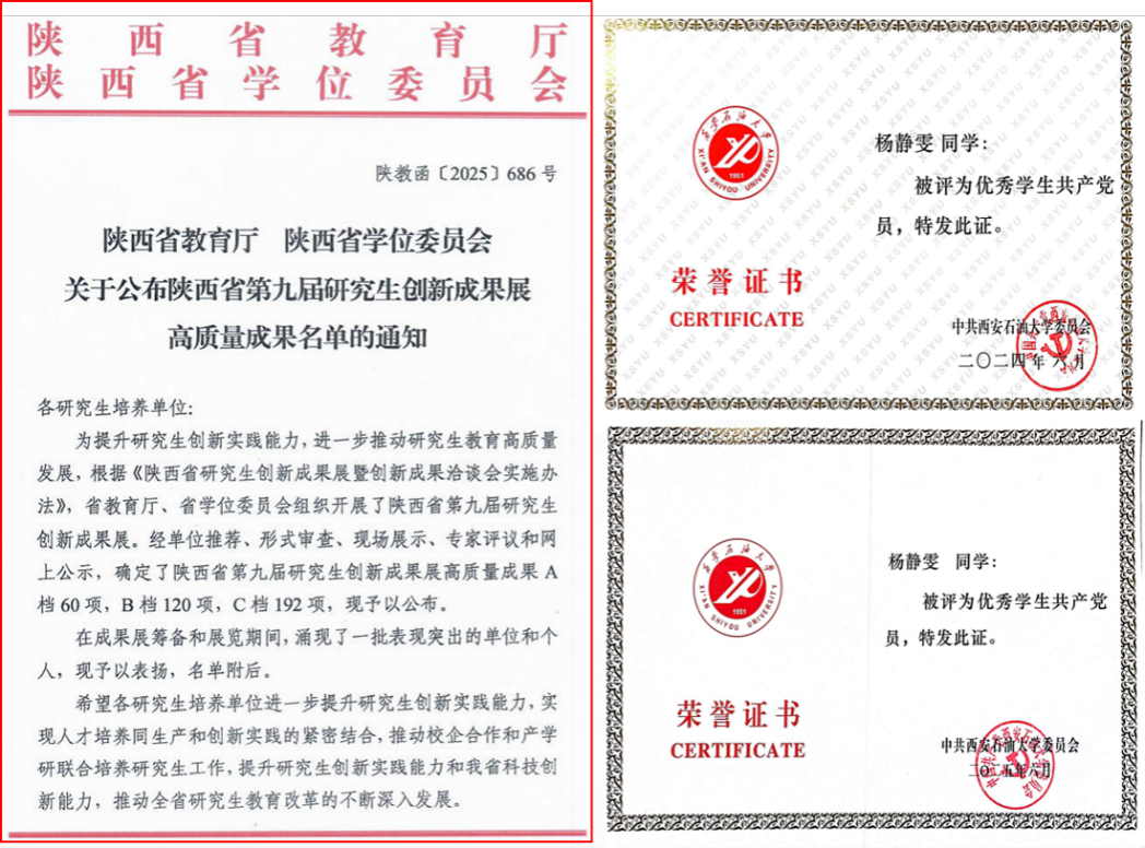 (3)2025年陕西省第九届研究生创新成果展高质量成果;