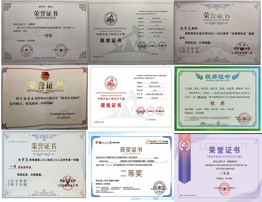 1)第十四届中国石油工程设计大赛全国二等奖;