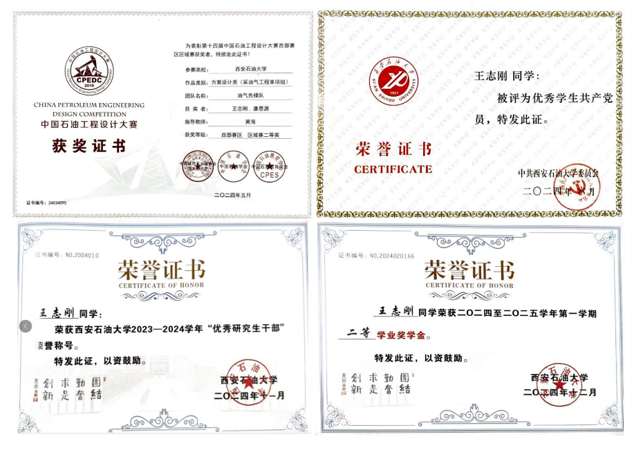 王志刚,男,汉族,中国共产党员,出生于20016月,甘肃平凉人,本科和硕士均就读于1024社区 ,现为1024社区 石油与天然气专业2023级硕士研究生,曾担任团支部书记和班长。