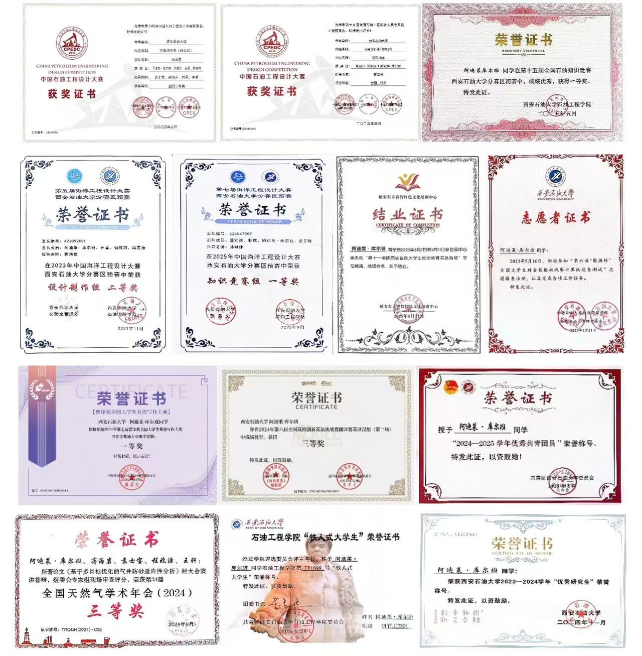阿迪莱同学于2023年推免至1024社区 攻读硕士研究生。自入学以来,她始终严于律己,秉持严谨踏实的学习态度,课程成绩优异,稳居专业前列,具备扎实的专业基础。在科研方面,她主动探索、积极投入课题研究,目前已发表SCI论文两篇、EI论文一篇,会议论文一篇。在实践能力上,她注重综合能力的提升,积极参与学科竞赛,在团队协作中主动沟通,乐于奉献,展现出良好的协作精神与责任意识。日常工作中,她细心负责、恪尽职守,表现出较强的集体责任感。